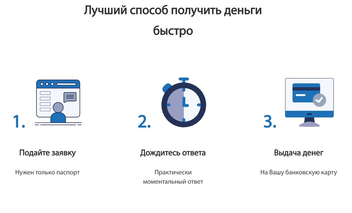 Микрокредитная компания с многолетней историей, полностью ведущая свою деятельность онлайн. Современные скоринг-модели позволяют принимать решения по заявкам практически мгновенно, а низкие процентные ставки от 0% делают продукты доступными для клиентов из любых регионов и с любым уровнем дохода.