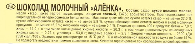 Разбор состава шоколада молочного на примере «Аленка молочная».