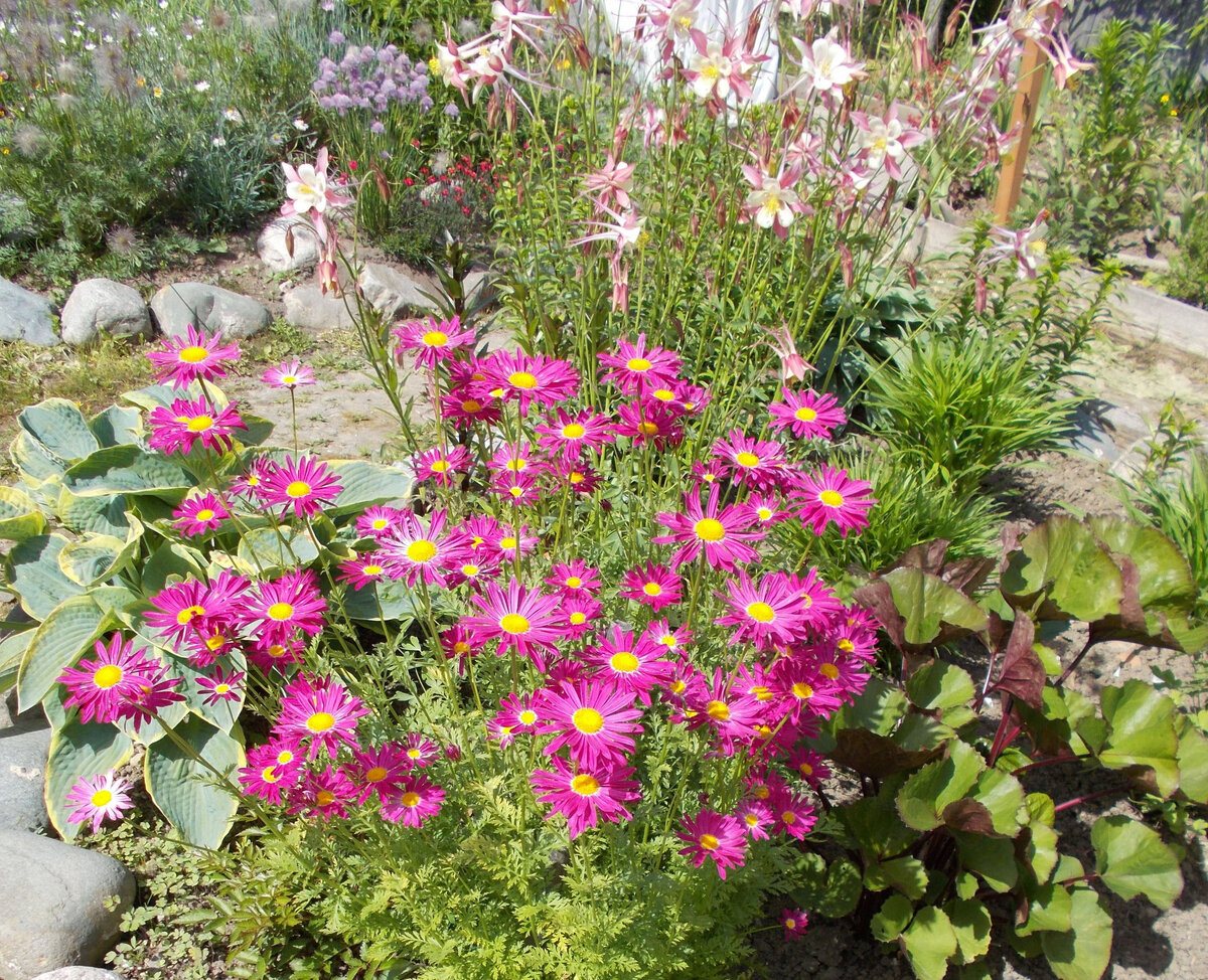 Все мои цветочки росли очень хорошо и некоторые даже порадовали своим цветением в первый год (дельфиниум и корейская хризантема). Я и не ожидала такого результата и была «на седьмом небе» от счастья Это фото корейской хризантемы сделано в 2009 году, дочь подарила мне фотоаппарат.