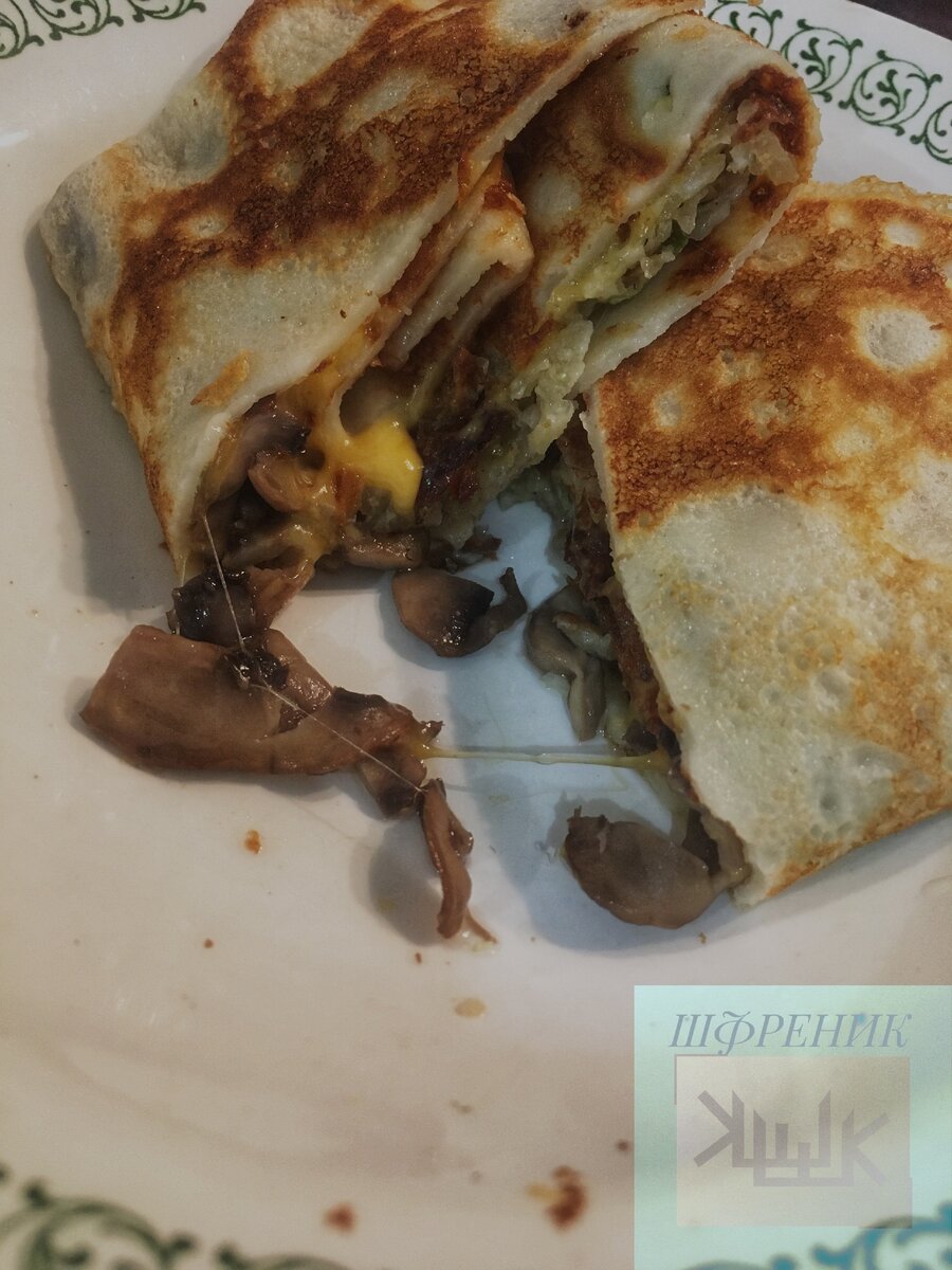 Бесподобные блинчики с картофельными драниками, грибами и сыром.