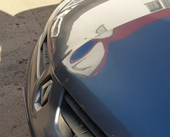 На капоте автомобиля была очень некрасивая и неприятная вмятина. Сейчас спецы будут пробовать удалять ее домашними кустарными