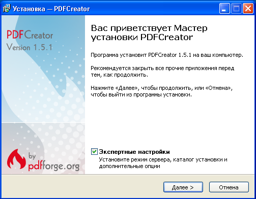 На Windows XP производим установку запускаем установочный файл, выбираем «Экспертные настройки»: