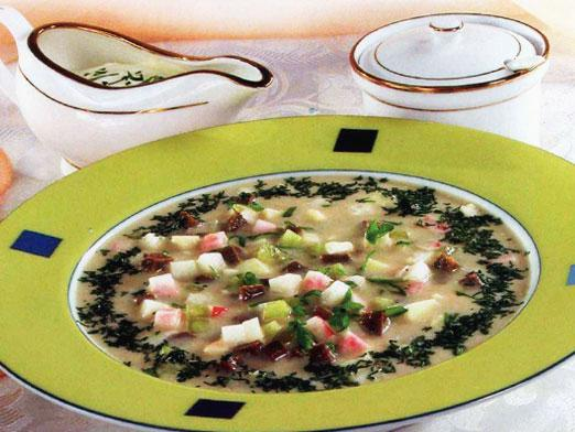 - Отправьте окрошку в холодильник на некоторое время для охлаждения. После чего он будет готов к использованию.