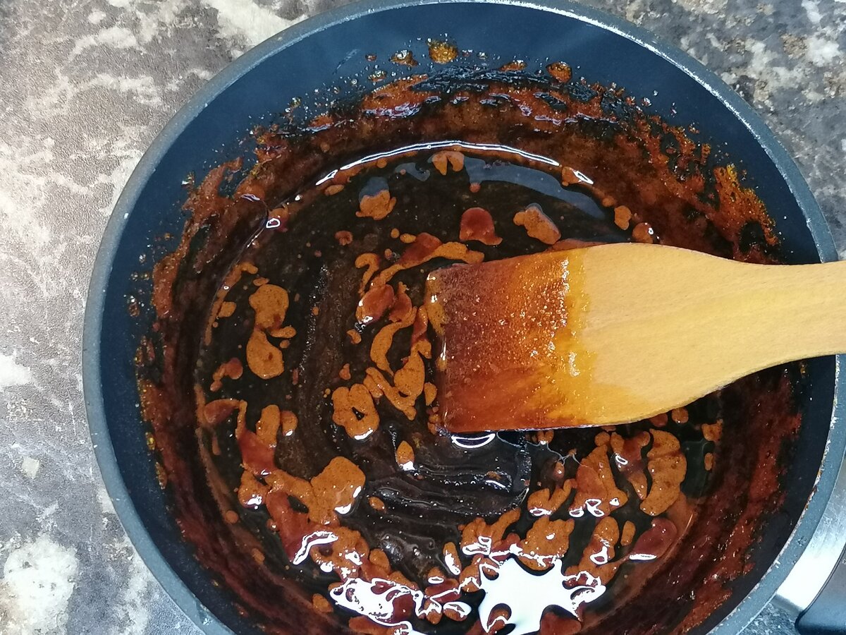 Первым делом, для разогрева, заводим духовку, на 160 градусов. Она как раз наберет температуру, пока готовится тесто. Тем временем, на слабом огне, в кастрюле растапливаем мед. И не снимая с огня, добавляем соду, и варим по времени, не менее двух минут, пока цвет карамельного оттенка не украсит наш мед.