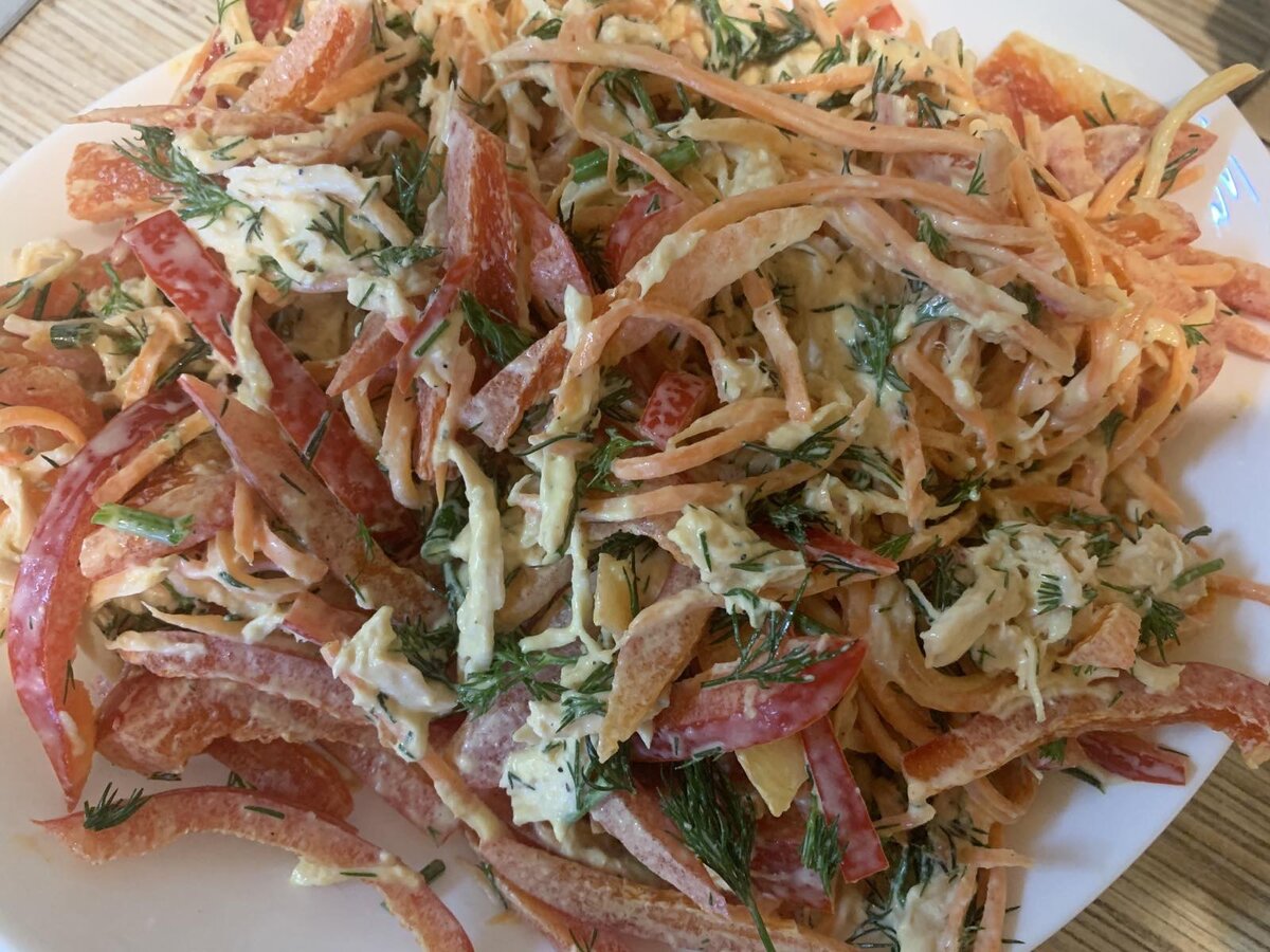 По стандарту праздничного стола были и закуски, и салаты, и горячее блюдо. Сегодня поделюсь рецептиком салата, который исчез буквально на глазах.