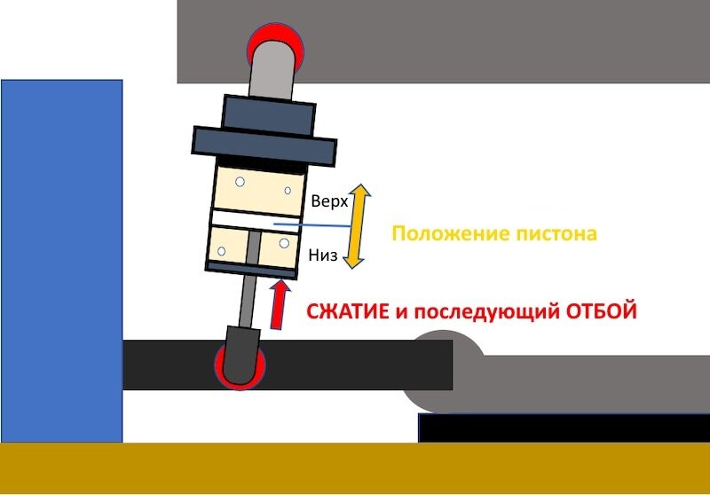 Скорость отбоя при прочих равных условиях зависит от положения пистона в цилиндре амортизатора. Позвольте мне вам пояснить подробнее.