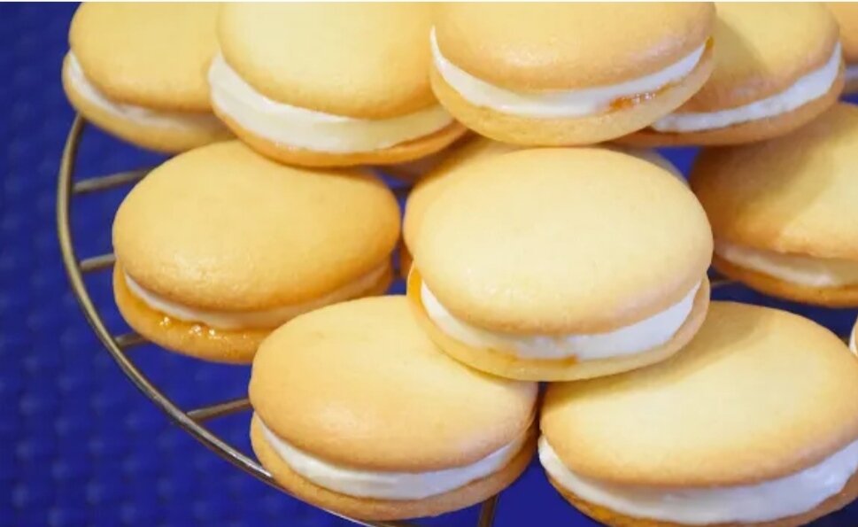 Тесто:Ингредиенты для теста: 2 средних яйца 40 гр. муки 30 гр. сахара 20 гр. крахмала 4 гр. ванильного сахара (это половина пакетика)