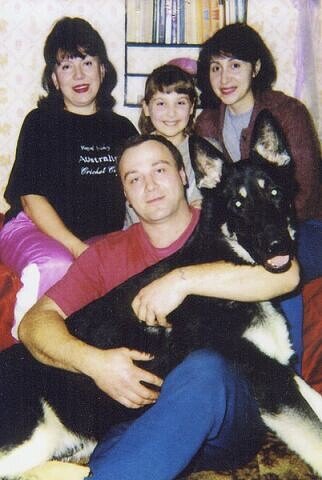 него овчарку, которую он недавно нашел у гаражей.Мы взяли себе годовалую
