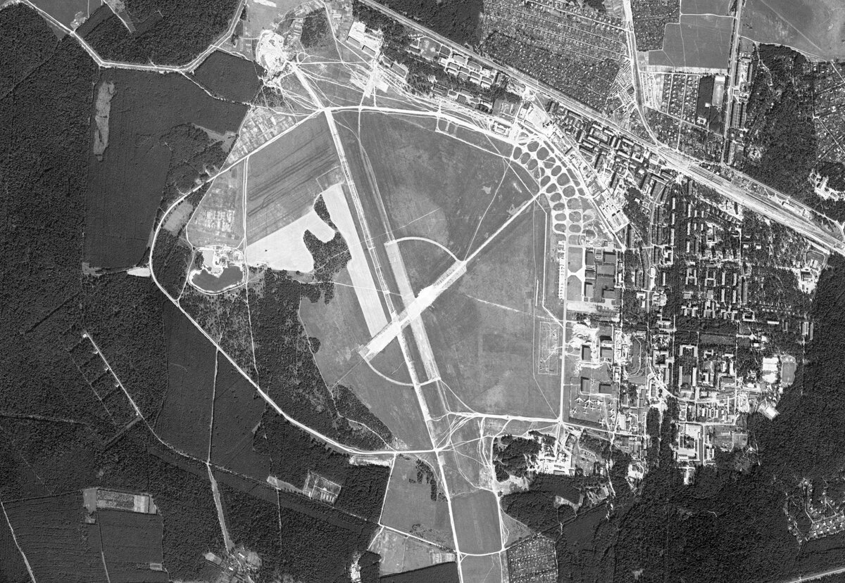 Совсем недавно на Авиафоруме замечательный человек под ником mars_208 выложил снимок подмосковного посёлка Монино, сделанный американским спутником-шпионом 2 сентября 1976 года. Данный снимок уникален, ведь в отличие от нескольких других, на которых запечатлелось Монино времён СССР, этот выложен в высоком разрешении. Он не уступает по качеству современным спутниковым снимкам и даже превосходит снимки немецкой аэрофотосъёмки Монино 1942 года.
