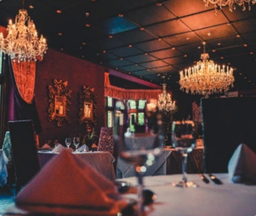 По всему холлу расставлены антикварные кресла, шкафы библиотеки-бара забиты рукописными книгами, а свет из окон отражается на оружии, развешанном по стенам.