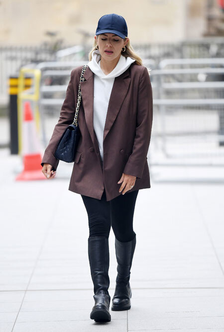 В новом сезоне жокейские сапоги ждет громкий камбек. Свой вариант есть и в гардеробе певицы и ведущей Молли Кинг. Звезда решила преподнести тенденцию в необычном ключе и поэкспериментировать с разными модными направлениями. Девушка взяла за основу уютное молочное худи и дополнила его классическим оверсайз-пиджаком шоколадного цвета, леггинсами и акцентными аксессуарами, которые обещают стать