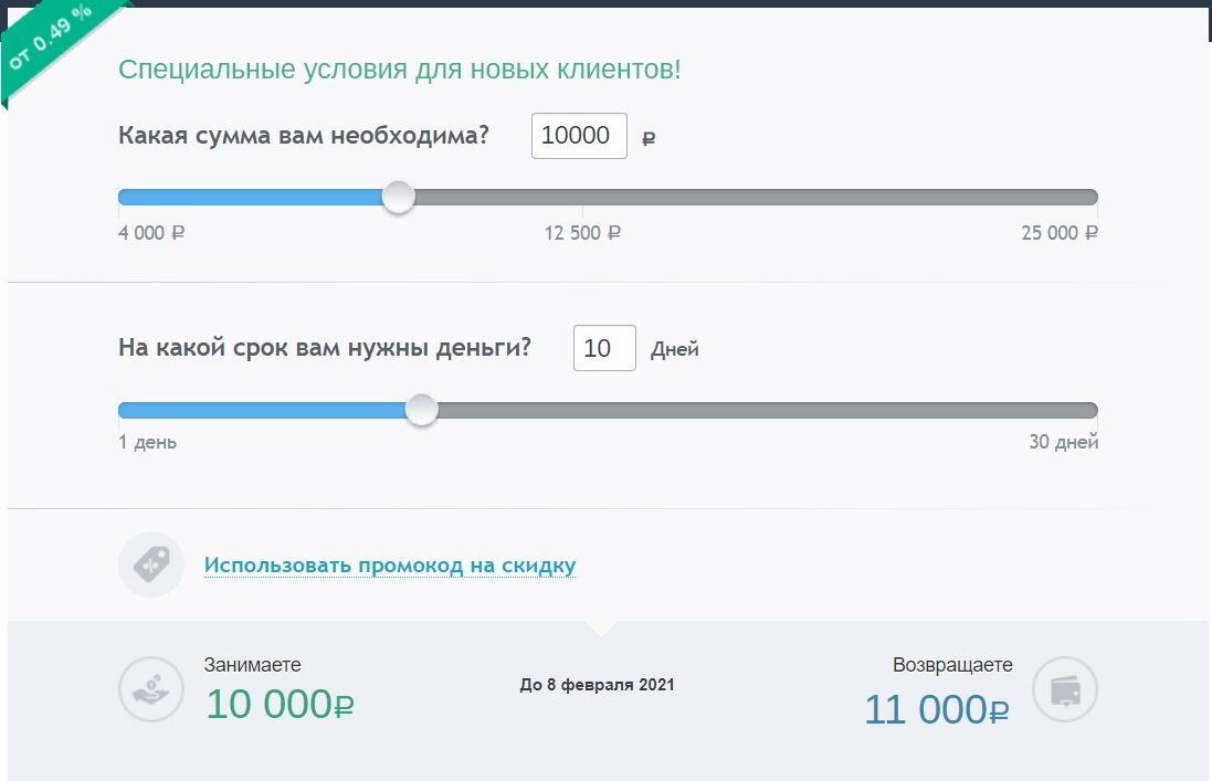 - Сумма первого займа: от 1 000 до 15 000 рублей;