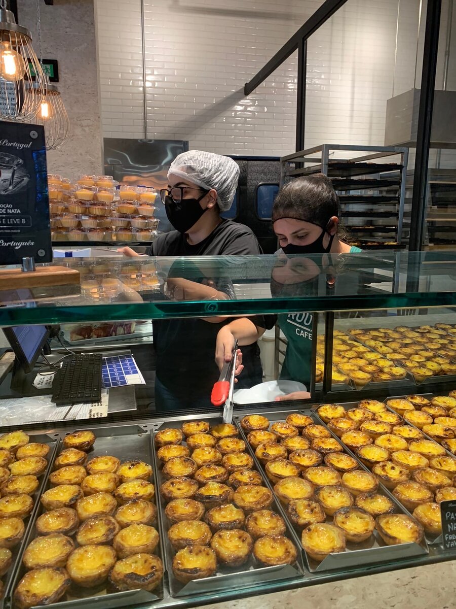 По дороге в Сан-Паулу мы заехали в португальский ресторан-магазин и я выбрала ей в подарок очень красивую салатницу из керамики с ручной росписью и еще какой-то органический чай. Взяла также две коробки с португальским пирожным - паштел-де-белень.