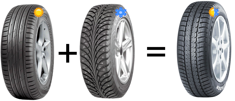 - Зимой в Финляндии запрещено ездить без шипов, а во многих странах Европы, наоборот, разрешены только неошипованные шины . Но во всём мире является обязательным правилом, чтобы автомобиль был обут по сезону. В нашей стране, у каждого своё понимание о том, что лучше, а что хуже. Несмотря на то, что зимы у нас суровее, чем в Европе, а дороги далеки от совершенства, многие российские автолюбители до сих пор верят в миф о всесезонной резине как об универсальной. Зачем летние шины, зачем зимние шины, если есть “всесезонка”! Многие компании выпускают всесезонную резину только потому, что её покупают. А впрочем, на самом ли деле такая резина всесезонная? Традиционно многие считают, что всесезонная резина – это резина с обозначением на боковине «M+S» — «Грязь и снег». Но как тогда объяснить тот факт, что, например, шины Goodyear Ultra Grip, которые являются зимними, и шины Goodyear Wrangler HP-летние, несут на боковине один и тот же значок – «M+S»? Всё очень просто- всесезонных шин попросту не бывает! И быть не может из-за того, что летние и зимние автошины кардинально различаются. Как по рисунку протектора, конструкции, так и по составу резиновой смеси. Достаточно лишь сказать, что резиновая смесь, из которой изготавливаются летние шины (часто с применением силики) полностью утрачивает свои свойства при пяти градусах тепла. Зимние шины рассчитаны на другой температурный диапазон и поэтому изготавливаются из совершенно другой смеси. Рассмотрим назначение протектора: летние шины – управляемость на мокром и сухом асфальте, стойкость к аквапланированию, зимние же шины – стойкость к заносу, управляемость и тормозные свойства на снежном покрытии и льду. Соответсвенно, при разрботке протектора используется совершенно различные конструкции и рисунок в зависимости от поставленных задач.Поэтому если Вы действительно цените свою жизнь и своё здоровье, то рекомендация может быть только одна –летом-летние шины, зимой — зимние, не важно с шипами или без. Выбор за Вами.