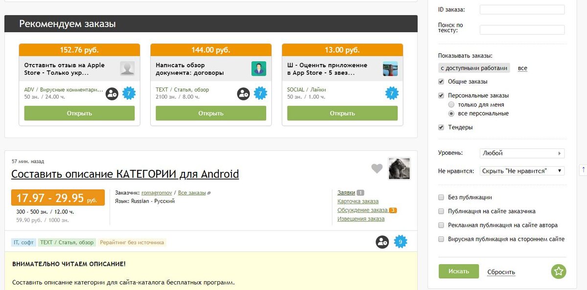 Беря во внимание большую аудиторию биржи, ежедневно приходящую сюда за уникальными текстами, можно представить себе спрос на хорошие тексты, которые становится так сложно получить в мире интернета, до жути переполненным информацией.