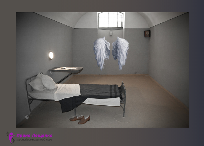 Я решила разобраться, в чем разница между понятиями «принять» и «смириться». С глаголом «смириться» вроде все понятно. Уже произошло, уже ничего изменить нельзя, приходится просто подстроиться под новую ситуацию и жить дальше. А вот «принять», это как? Что должно внутри меня произойти такого, чтобы я поняла, что я приняла эту ситуацию. Как всегда, задаю вопрос своему подсознанию. Ответ получаю в виде образов, и ощущений. Чувствую тяжесть в ногах. Внимание на ноги, они в кандалах, прикованы цепями к полу. Я нахожусь в маленькой тюремной камере два на полтора, у меня есть крылья, и я хочу от сюда выбраться. В голове но-стоп крутиться фраза: «Я хочу быть свободной!»