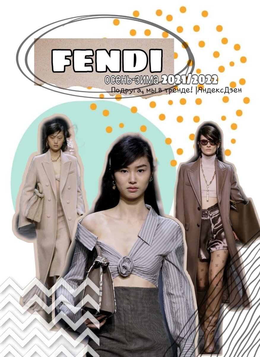 Приветствую друзья! Вы попали на канал Подруга, мы в тренде! Все самое модное, актуальное и интересное! Коллекция бренда Fendi осень-зима 2021 напомнила мне коллекцию Max Mara весна-лето 2021 - столько оттенков коричневого - от бежевого до шоколадного. Коллекция богата на фактуру и силуэт. https://zen.yandex.ru/media/lepav/tendencii-mody-vesnaleto-2021-max-mara-60312ecc084cc34524fd953e В этой статье сравню для вас новую коллекцию и коллекции предыдущих периодов. 1. Струящиеся ткани, в том числе шелк и атлас. Монохромные образы, основаны на одном цвете разного тона: Шоколадный цвет, шоколадно-розовый: Бежево-золотистый, бежево-розовый. 2. В качестве декора бахрома, в том числе в декоре верхней одежды - мягкая, плотная, меховая. Крученая, шелковистая и струящаяся: 3. Топы, бра и голые животики И даже в вязанных комплектах: Интересный момент - в коллекции весна-лето 2021 (летней!) не было такого количества укороченных верхов😁 - посмотрите FENDI. 4. Асимметрия и открытые плечи 5. Образ в
