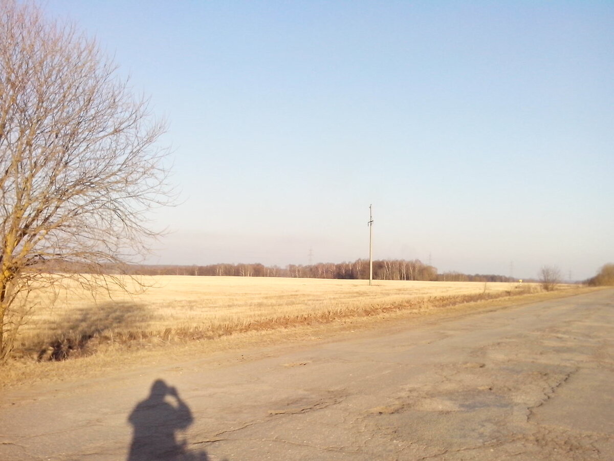 Стартовал от своей дачи в Раденках (Жуковский район Калужской области). Сперва хотел проехать на Тарусу по просёлочным дорогам, однако, практически сразу после выезда буквально увяз в раскисшей от талого снега дороге через ближайшее поле. Колеса заблокировало, пришлось снимать велобаул, вытягивать велосипед на менее грязное место, хоть как-то вычистить грязь, и возвращаться обратно. Делать нечего, пришлось ехать по автодороге на Некрасово-Волковское, и далее по шоссе на Тарусу.