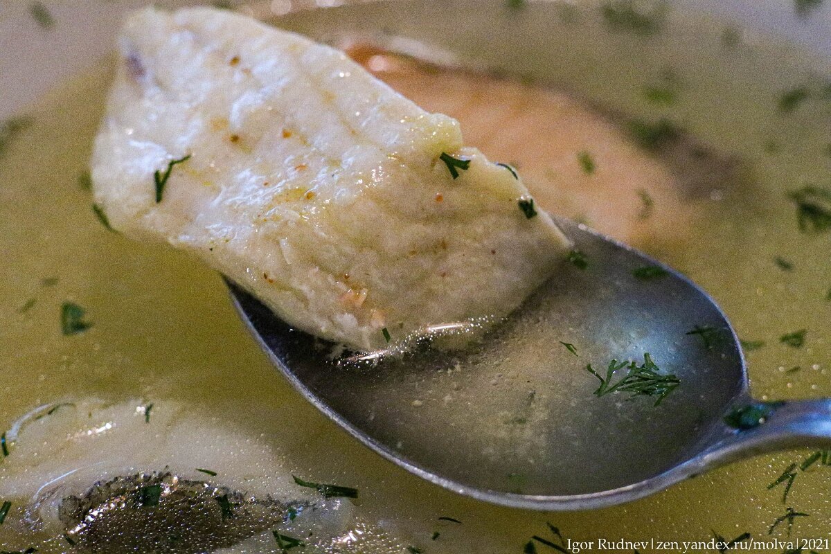 Я же решил взять простую уху, потому что уж ее-то поморы точно ели. Вообще настоящая поморская уха сильно отличается от того рыбного супа, к которому привыкли люди в средней полосе. Рыба выкладывается на тарелку отдельно, а сама уха — это просто наваристый рыбный бульон.