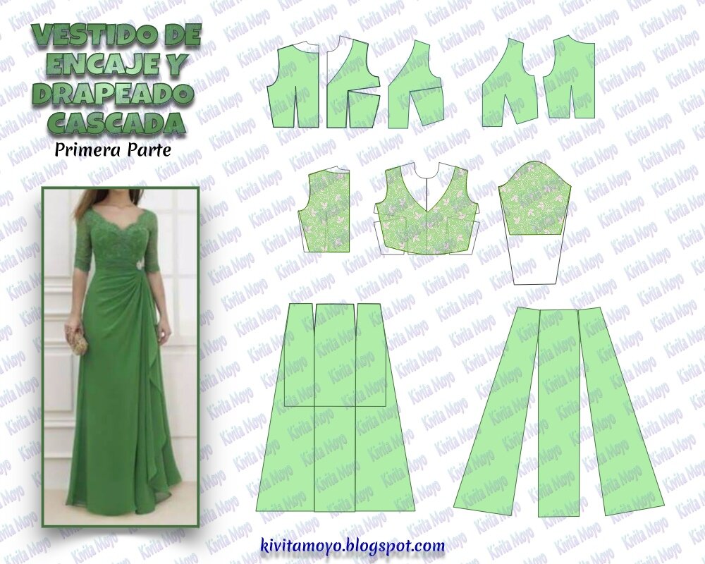 Очень красиво декольтированное платье с кружевным лифом Отрезное по талии , рукава 1/2 , на юбке асимметричная драпировка на левом бедре