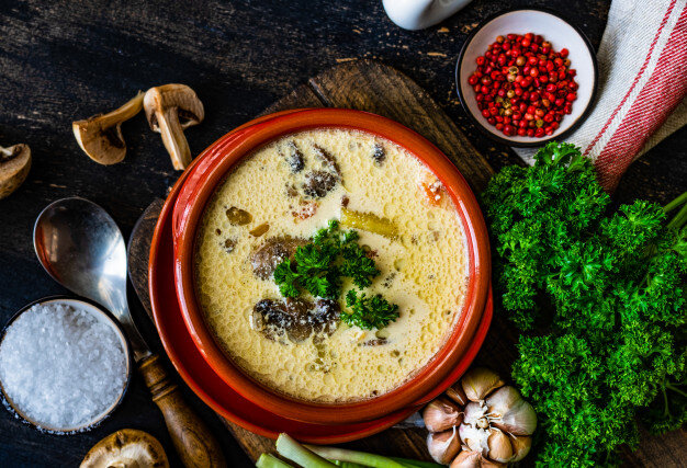 После овощей, в каструлю отправляем порезанный кубиками плавленный сыр. Затем сливки, и солим перчим по вкусу. Доводим суп до кипения и снимаем с огня. Добавляем зелень по желанию и даем супу настоятся. Приятного аппетита!