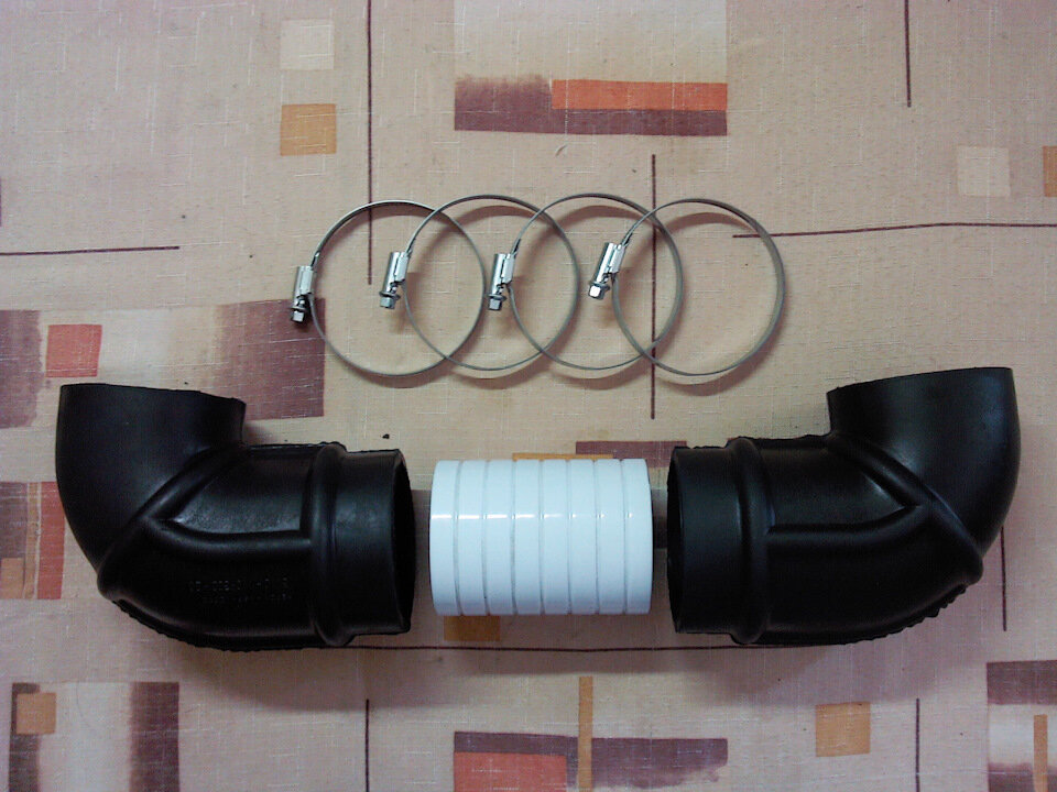 Резиновые Г-образные патрубки раздобыл у ГАЗелистов, внутренний диаметр те же 7 см.