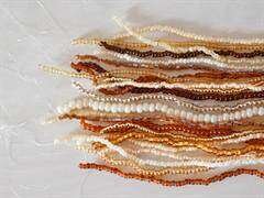 Для начала необходимо вываливать весь бисер в всякую емкость. Сейчас пора приступить к изготовлению бисерных нитей своими руками. Схема плетения колье из бисера и бусин не доставит излишних хлопот. С помощью иголки сделать бисерные низки приблизительно 40 см в длину. Отрегулировать длину изделия по своему усмотрению.