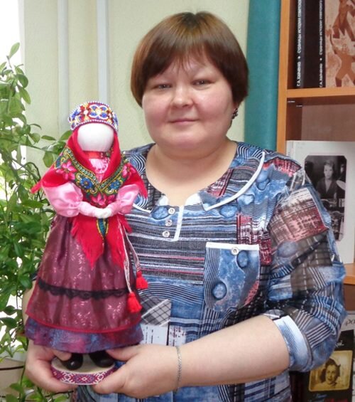 Марина Багаева работает в библиотеке, рукоделием занимается с детства, а текстильной куклой увлеклась с 2015 года. В 2019 году дистанционно обучалась на курсе "Поэзия народного костюма в кукле" у народного мастера Пермского края Хабышевой Ирины Ивановны.