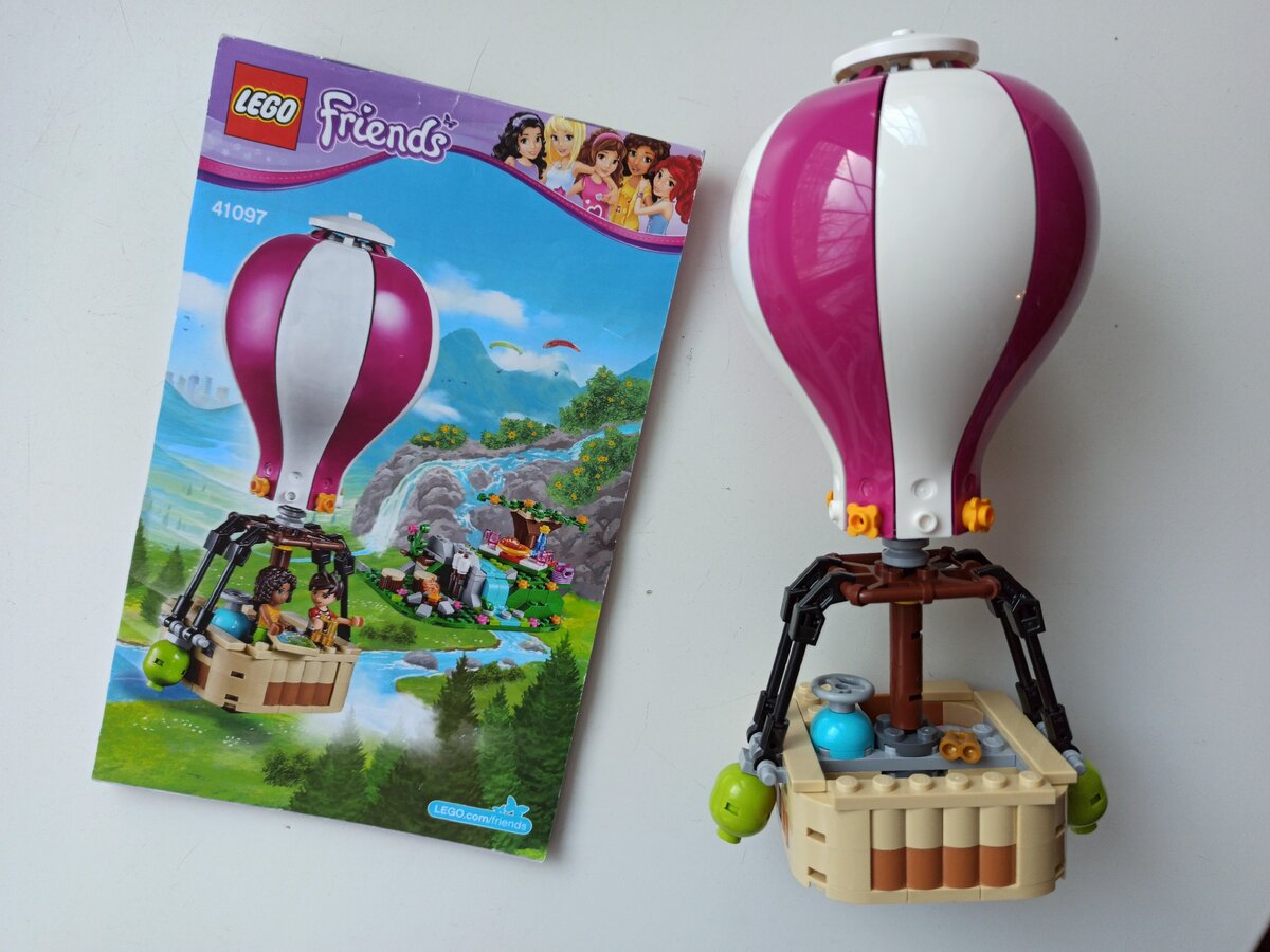 На сегодня у нас lego для девочек, серия Friends 41097 Путешествие на воздушном шаре. Купила я его на авито за 400 рублей, в идеальном состоянии, полный комплект с инструкцией, без коробки, и с запасными мелкими детальками, их заботливо положили в отдельный пакетик. Считаю покупку удачной, продам набор потом подороже.