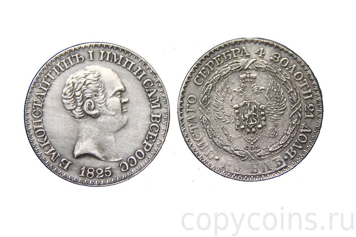 Российской империи, которым на тот момент был Егор Францевич Канкрин. Для того, чтобы наладить натянутые отношения с новым правителем, он решает сделать ему необычный подарок - рублю с изображением самого Константина.