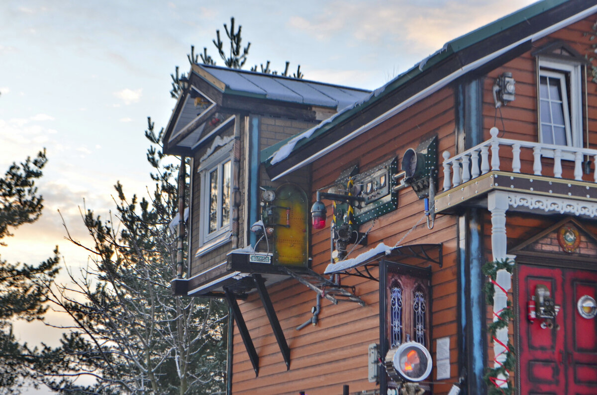 На юго-западе Петербурга среди дачных домиков и современных коттеджей возвышается необычное здание с башенкой, флюгером и гигантскими колёсами. Дом со стимпанковскими механизмами, припаркованный во дворе настоящий самолёт и общий антураж сказочного терема поражают с первого взгляда. Внутри ещё интереснее: экскурсию по экспозиции ведет сам владелец музея - инженер-изобретатель, отставной военный Андрей Карзубов. В общем, обо всем по порядку.