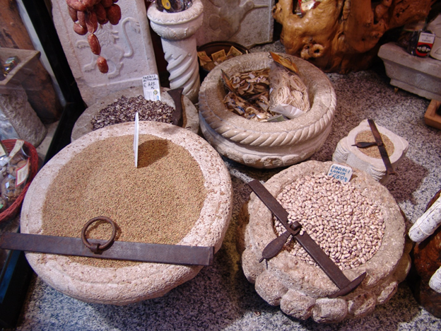 Популярной была и каша или похлебка из смеси бобовых и злаковых. «Эй, жена, бобов поджарь нам, да побольше, меры три! – восклицает герой комедии Аристофана, - И муки прибавь пшеничной и маслин не пожалей!».
