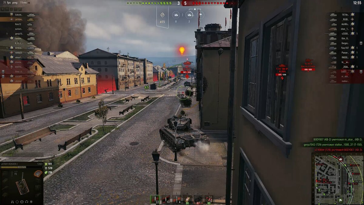 После выстрела не стоим на месте, а ездим вперёд-назад. Перезарядка 6.6 секунд просто шикарна. Точность только для средних и ближних дистанций, но цена снаряда и короткая перезарядка дает нам возможность стрелять вдаль.