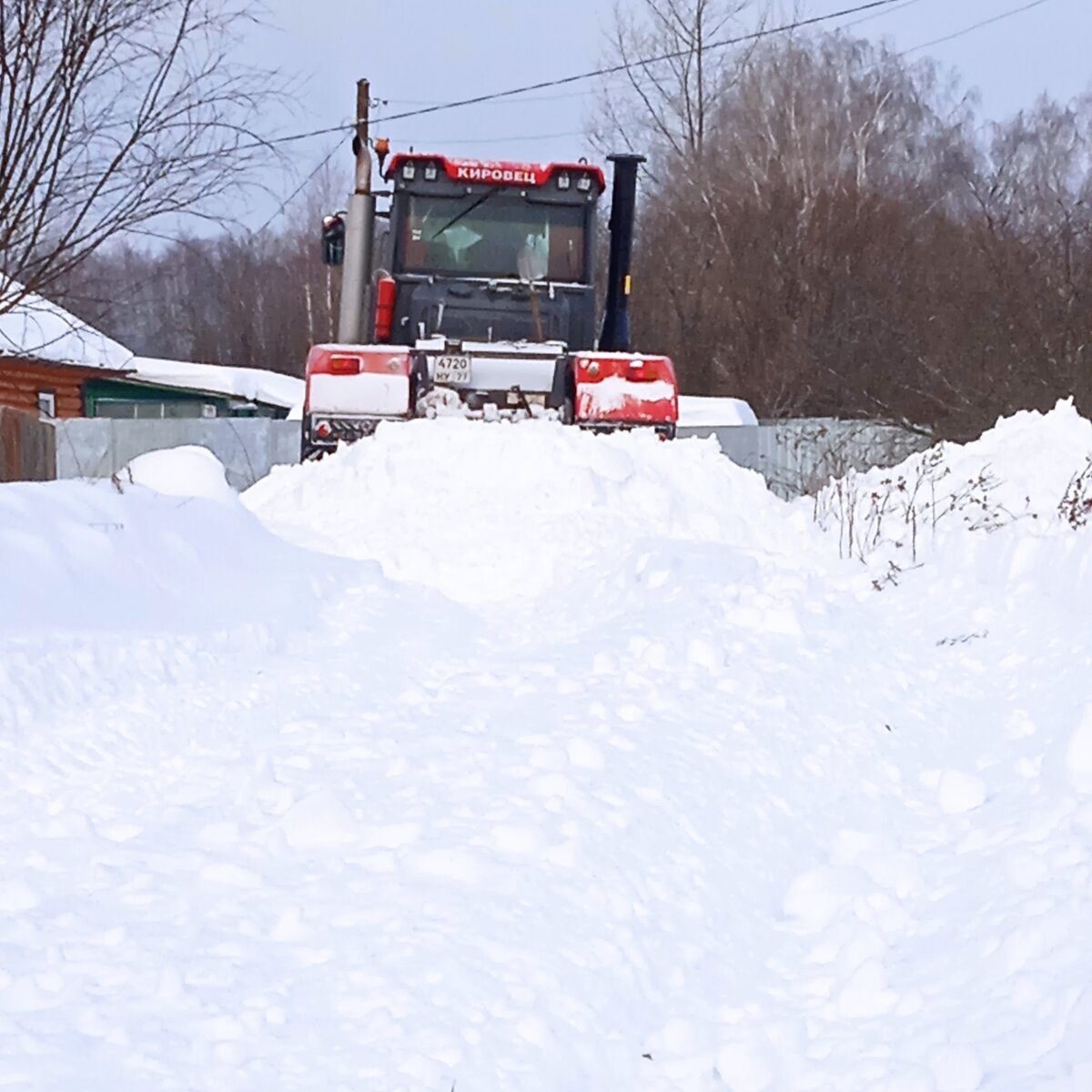 На въезде в деревню трактор встречает детский участковый врач Тамара Сергеевна, у которой здесь живёт старенькая мама. «Спасибо, что приехали! – улыбается женщина. – Вчера дорогу прочистили хорошо, только двум машинам тут не разъехаться. Попросила Ольгу Александровну, чтобы тракторист сделал карманы. Пообещала, что сделает. Конечно, ощущения всю эту неделю были ужасные. Понятно, что техники не хватало. И как показывает опыт, надо её покупать, чтобы «американский инфаркт первого снега» вновь не произошёл – это когда все хватаются за лопаты, а их нет».