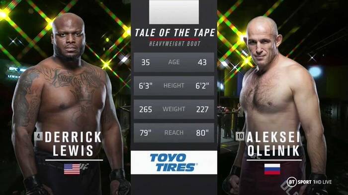 Вернемся назад, когда Олейнику выпал шанс схватиться с Дерриком Льюисом - топовым нокаутёром, более молодым, тяжелым и драматически превосходящим в ударной мощи - итогом стало поражение, но трудовое, когда от удушения или "американы" Льюиса спасла "физуха" и...