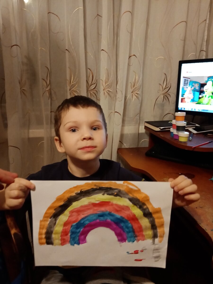 Посадила я значит ребенка за стол, и дала ему задание. На листке бумаги нарисовать акриловыми красками радугу. если к слову задание добавить слово челледж или заменить его на это слово, действует это на детей просто волшебным образом.