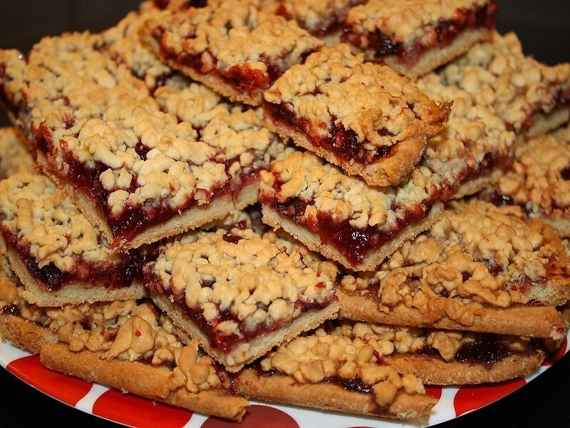 Ингредиенты:180-200 гр. сливочного масла220 гр. сахара500-600 гр. мукидве столовых ложки сметанычайную ложку содыдва яйцагустое варенье или джем