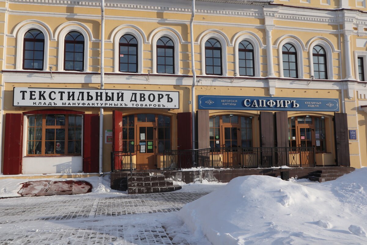 Также тут была восстановлена и дореволюционная орфография. "Гостинный" с двумя "Н" - правило тех лет. А в Рыбинске - целых два "гостинных" двора, напротив друг друга.