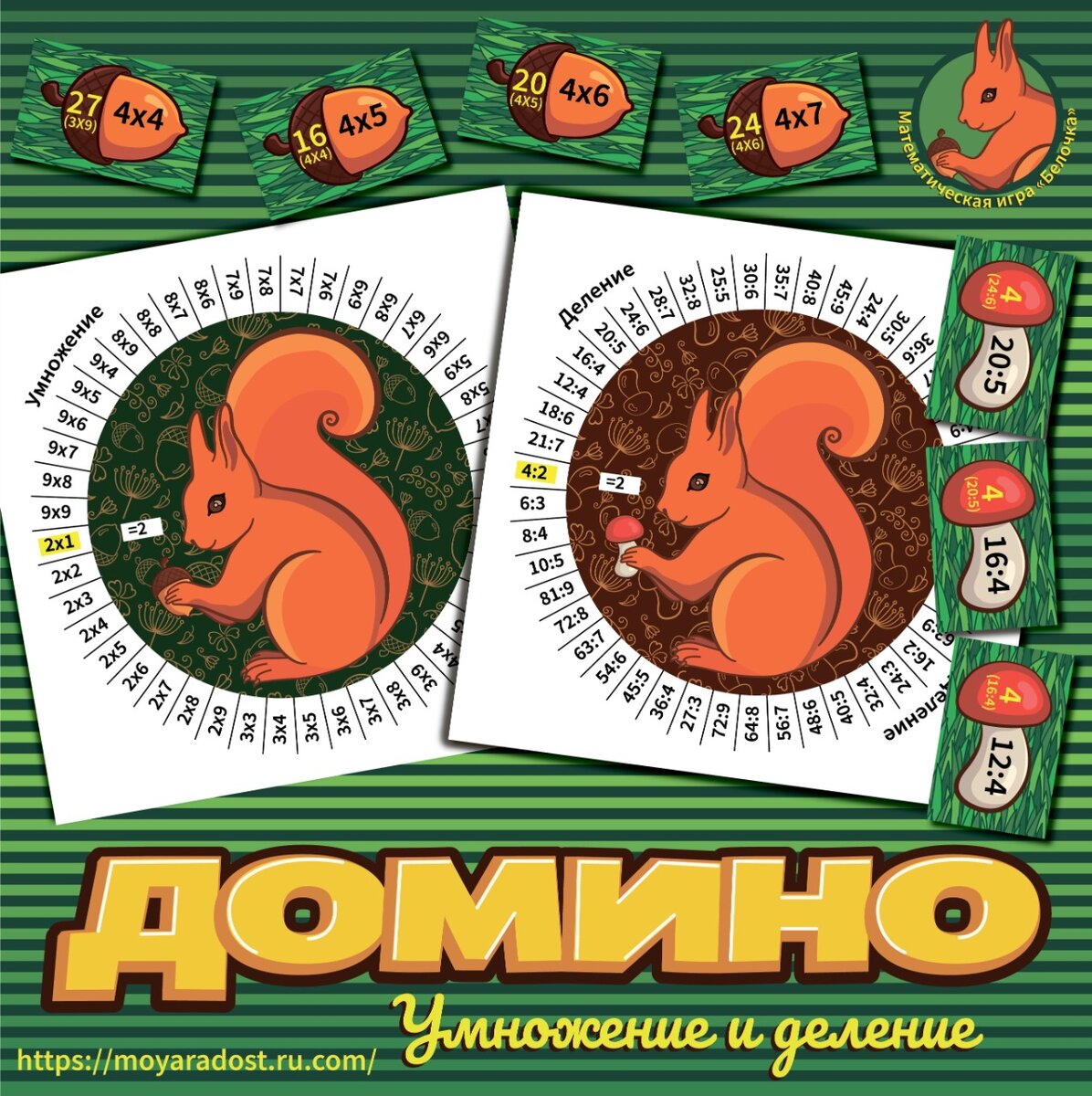 Математическое "домино белка" поможет детям запомнить быстро и качественно, без зубрешки таблицу умножения и деления.
