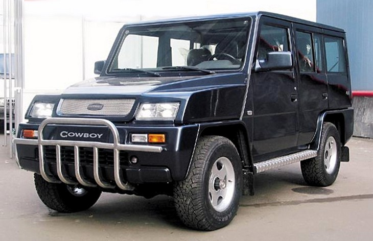 Каубой – обладает неплохим комфортом, надежностью, достаточно бюджетной ценой и неплохой технической начинкой. Крышка капота, арки колес, оба бампера и дверные карты созданы их пластикового материала. Дверь сзади, «распашной конструкции -двустворчатого типа.