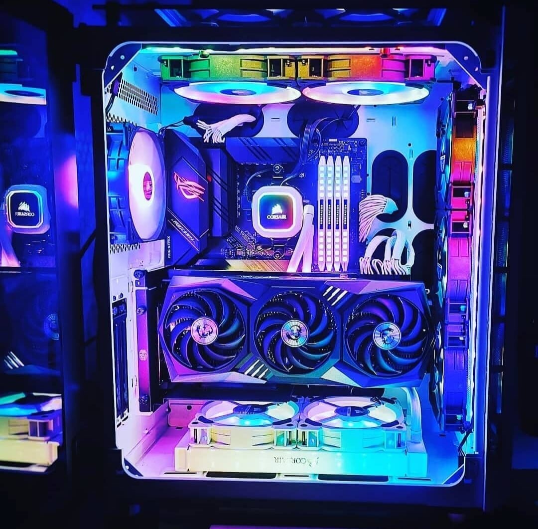 Чтобы системный блок в принципе работал, ему необходим блок питания. Для такой мощности составляющих прекрасно подойдет блок питания Deepcool DQ850 850W обеспечат стабильную работу всех составляющих.В добавок к блоку питания кабель питания и материнской платы ADATA XPG Prime ARGB -это переходники для красивого кабель менеджмента. А система водяного охлаждения для процессора i9-10900K будет Cooler Master MasterLiquid ML240L RGB.Ну и наконец корпус я выбрал Abkoncore AL1000 SYNC — массивный компьютерный Full Tower корпус с двумя боковыми панелями из закаленного стекла. В качестве материала каркаса производитель выбрал нержавеющую сталь, а рама боковых стенок изготовлена из алюминия. Корпус имеет внешние габариты 365 × 510 × 548 мм и вес 12,3 кг.