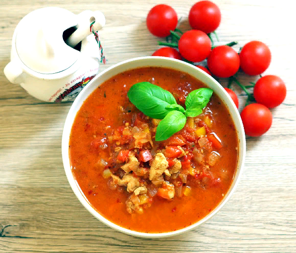 На приготовление этого блюда меня вдохновила венгерская кухня. В этом году я была первый раз в Венгрии и мне очень понравилась их кухня. В супе доминирует вкус перца и помидоров. Для его приготовления я использовала острую паприковую пасту, которую я привезла с берегов озера Балатон, но вы можете просто приправить острой немного вяленой паприкой. Первоначально в суп добавляют мясо говядины, но