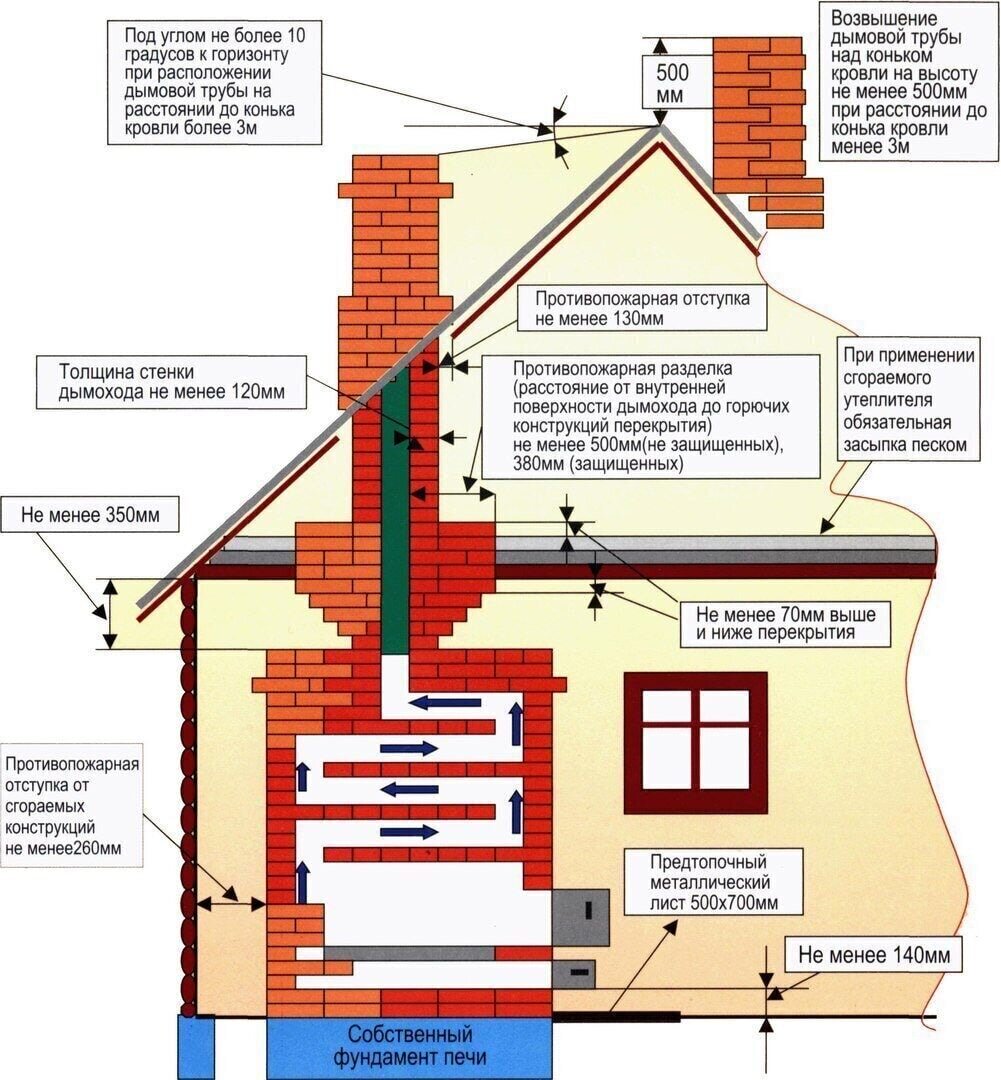 Основные требования по устройству дымовой трубы.