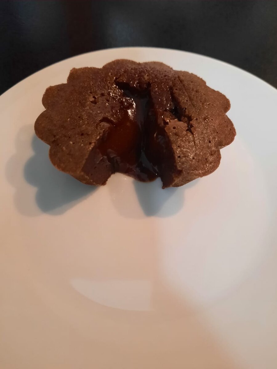 Силиконовые формы смазываем сливочным маслом и вливаем в них нашу жидкость. Запекаем в разогретой до 180 градусов духовке 8 минут.