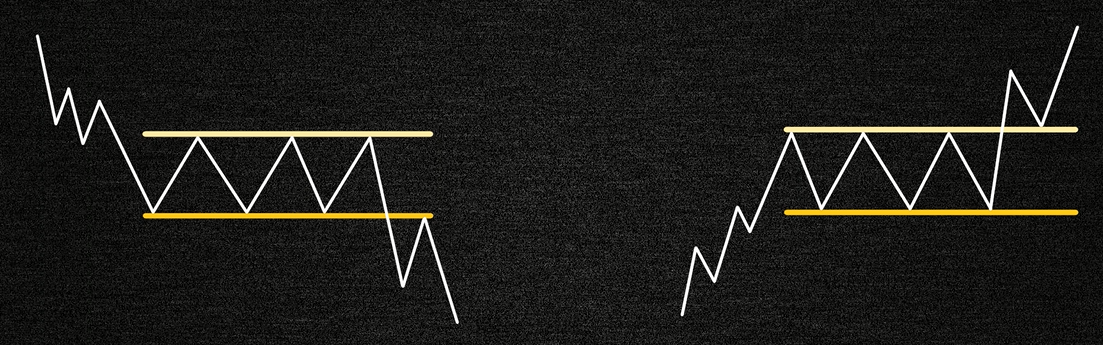Если сильно упростить, то можно сказать так. Прямоугольник - это некая пауза роста или спада рынка, пауза