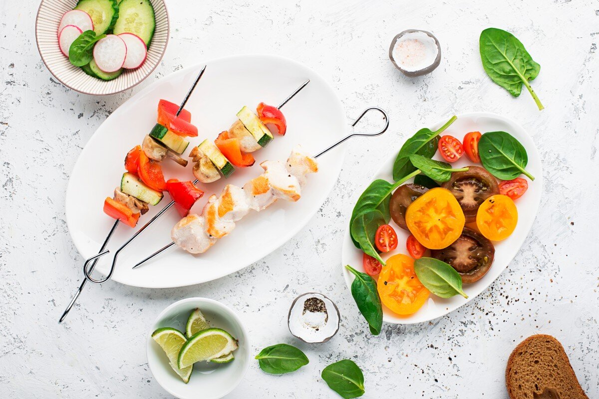 Овощное рагу, обезжиренный йогурт и зеленый чай.
