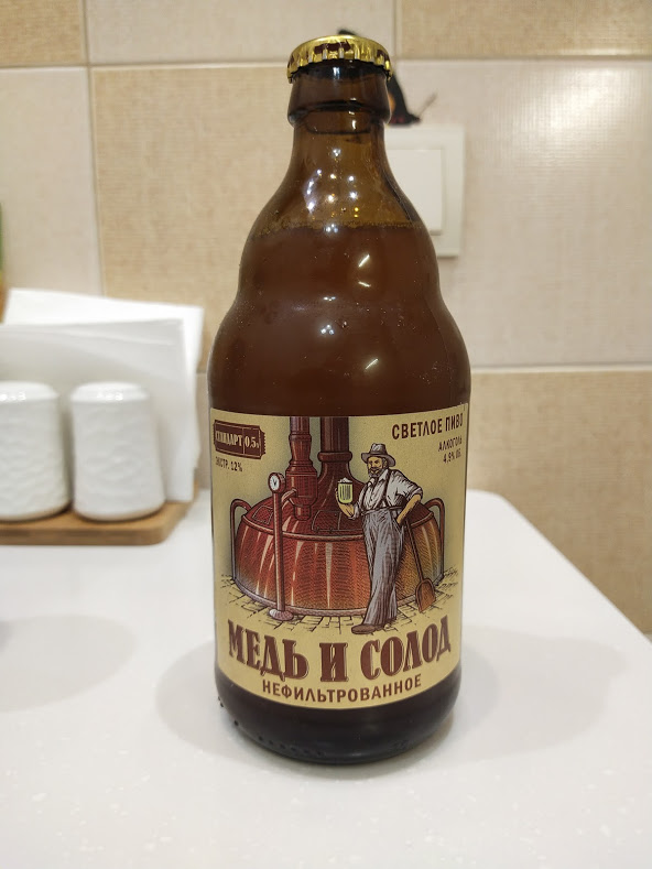 Пиво светлое нефильтрованное "Медь и Солод". Без консервантов.