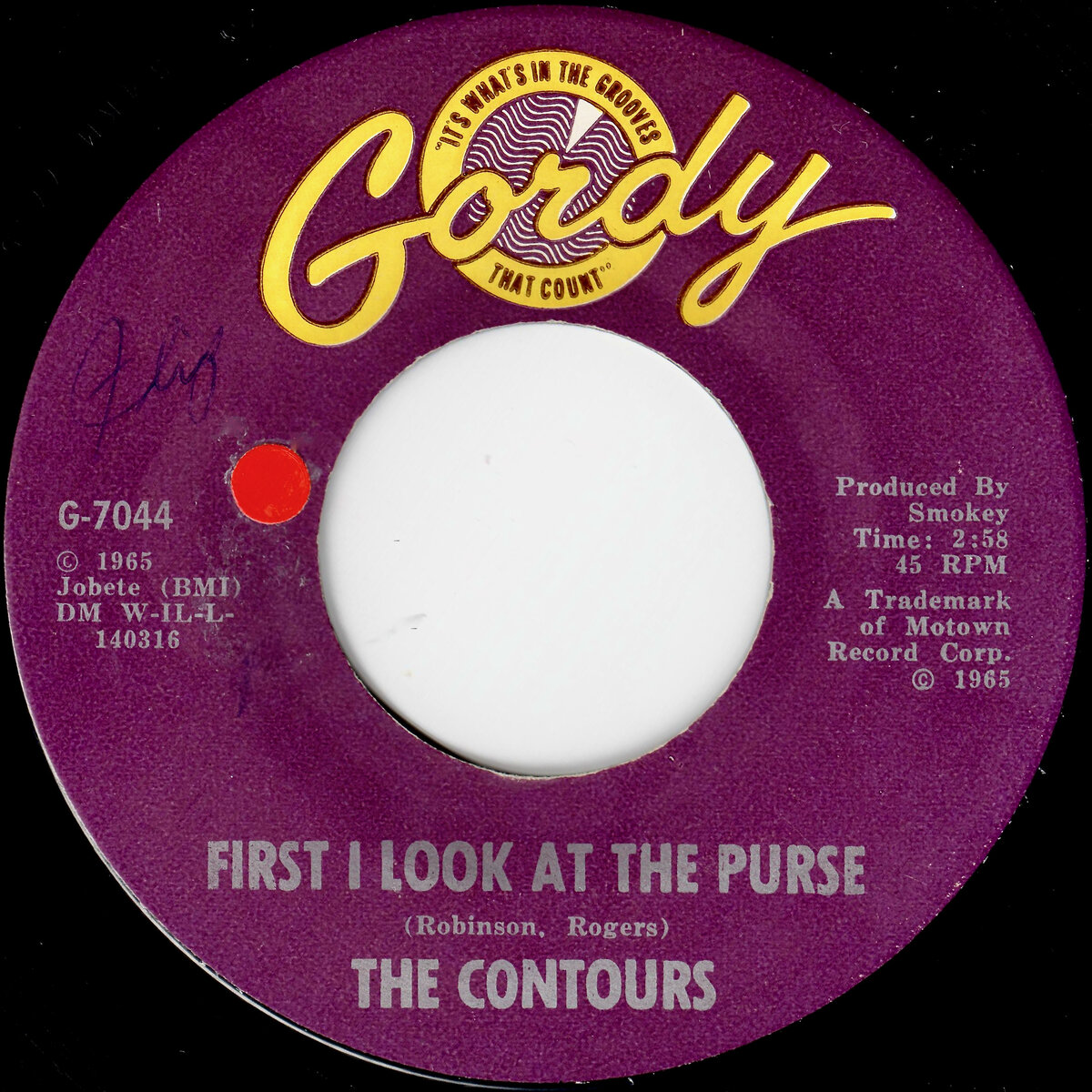 Всегда с удовольствием покупаю синглы Мотаун. Хит 65 года First I Look at the Purse от группы The Contours . Соавтор и продюсер - Smokey Robinson .