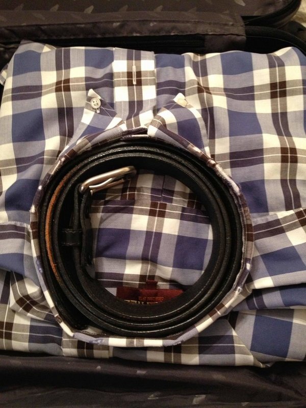 Именно так нужно складывать рубашку и пояс. Воротничок останется в идеальном состоянии!