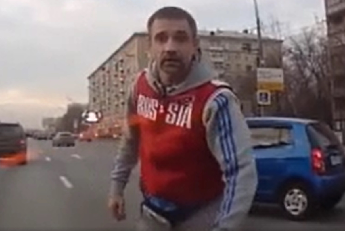 Вот и очередной эпизод, который попался мне на глаза как раз из таких - водитель в красной куртке с патриотической надписью Russia - выскочил из своей машины и направился в сторону автомобиля